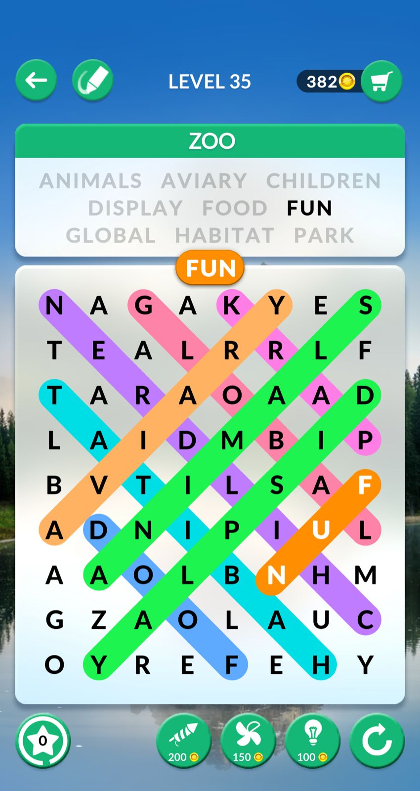 Wordscapes Search is a word find game published by PeopleFun. Some Levels of the game are quite difficult and sometimes you can use our help. We played and sharing here answers screenshot for Wordscapes Search Level 35 Zoo.