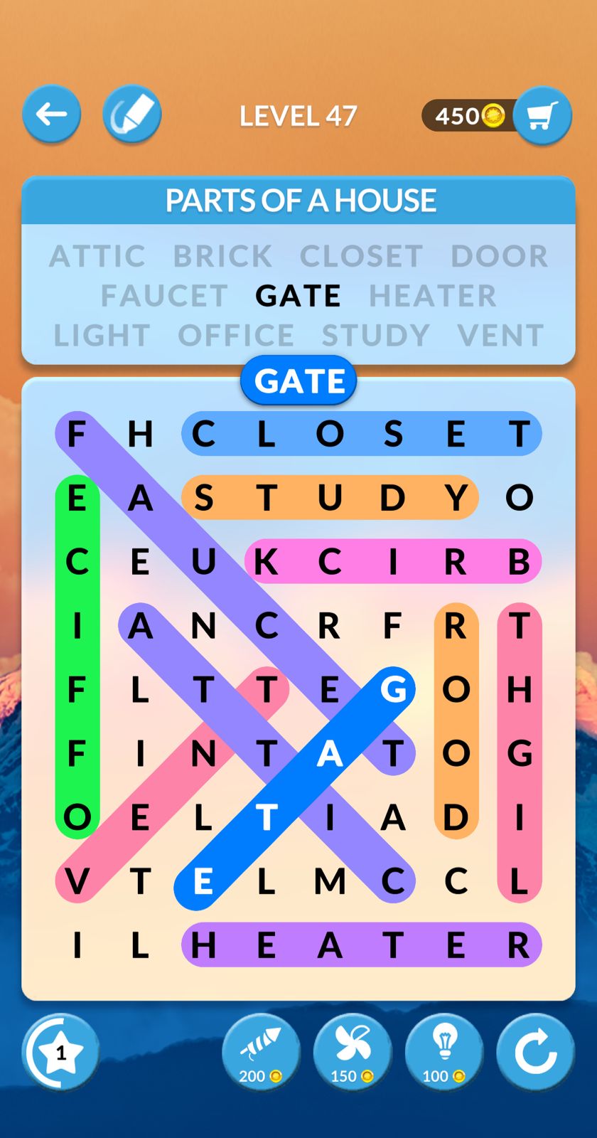 Wordscapes Search is a word find game published by PeopleFun. Some Levels of the game are quite difficult and sometimes you can use our help. We played and sharing here answers screenshot for Wordscapes Search Level 47 Parts of a house.