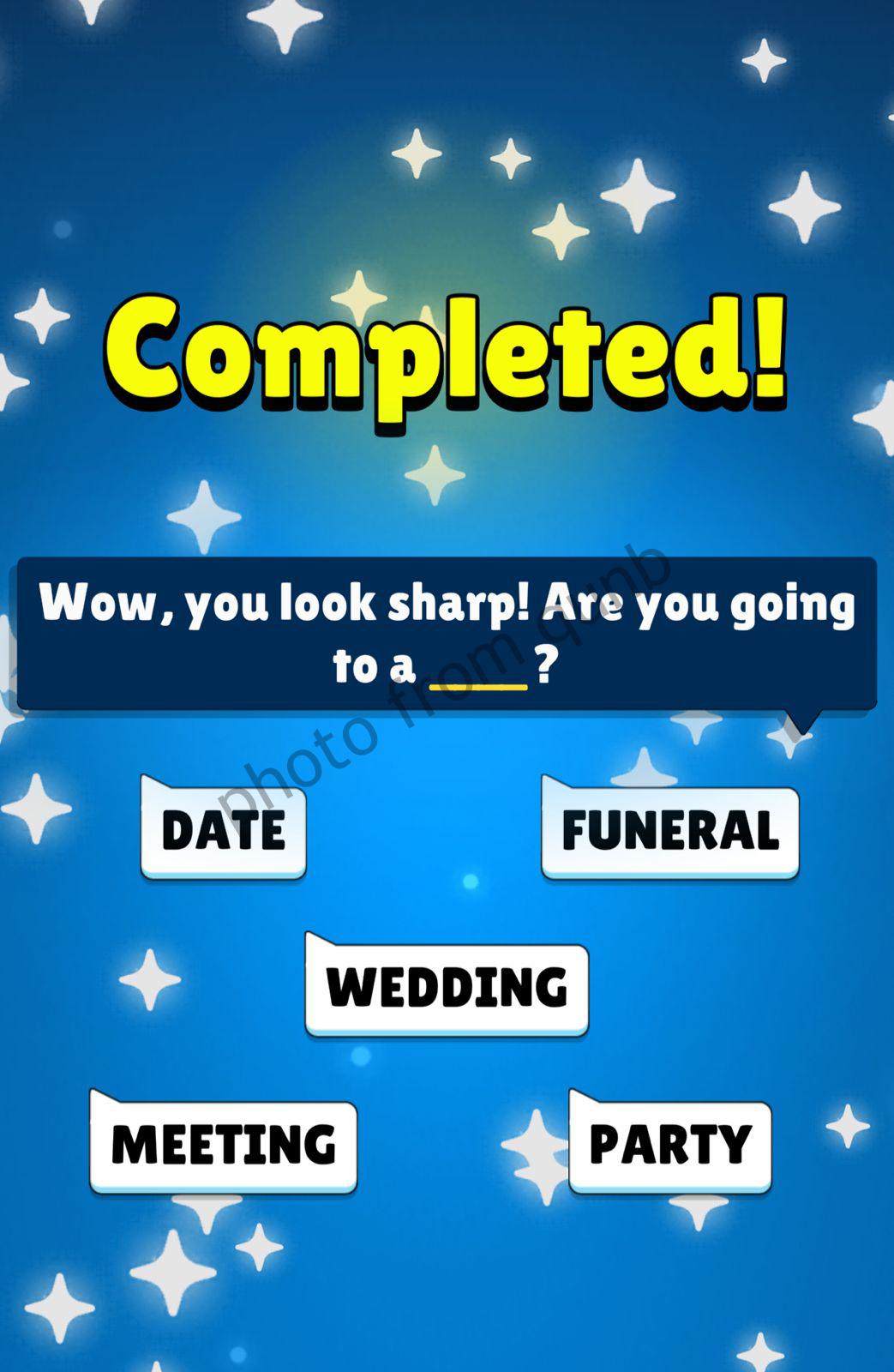 Popular Words Game is created by Unico Studio. Game including hundreds of unique questions, free Daily challenges and bonus rewards. You can play this game offline anytime and anywhere.For pass the level you have to guess 5 words that are missing in the sentence. For this, like hint is provided first letter of the every word. The levels of the game start with the easiest and continue with more difficult puzzles. If you need help for some levels – you can find it in our website. Here you can find photo with all answers for “Wow, you look sharp! Are you going to a __” which is a question from Level 309 Popular Words Game. Below answers follow link to all answers of the game. Enjoy your game!