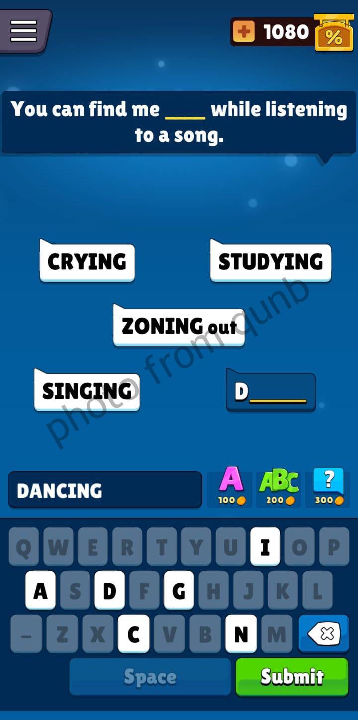 Popular Words Game is created by Unico Studio. Game including hundreds of unique questions, free Daily challenges and bonus rewards. You can play this game offline anytime and anywhere.For pass the level you have to guess 5 words that are missing in the sentence. For this, like hint is provided first letter of the every word. The levels of the game start with the easiest and continue with more difficult puzzles. If you need help for some levels – you can find it in our website. Here you can find photo with all answers for “You can find me ____ while listening to a song” which is a question from Level 208 Popular Words Game. Below answers follow link to all answers of the game. Enjoy your game!