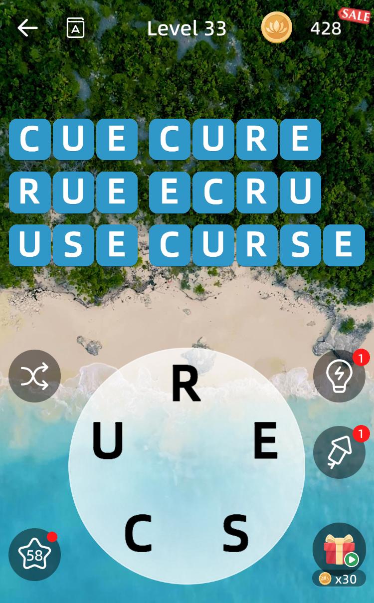 Zen Word – Relax Puzzle Game presents a formidable word and brain challenge that serves as a workout for your cognitive faculties and a sharpener for your intellect. In Zen Word, you must embark on a quest to identify and link the correct letters, ultimately unveiling an average of 20 hidden words in each level, putting your vocabulary to the test. The length of the words remains your sole guiding factor in unearthing all the words and surmounting the challenges. Sometimes some of levels are quite hard. For this we are ready to help you. On this page you can find photo with answers for Level 33 Zen Word – Relax Puzzle Game. For more level answers follow link below photo.