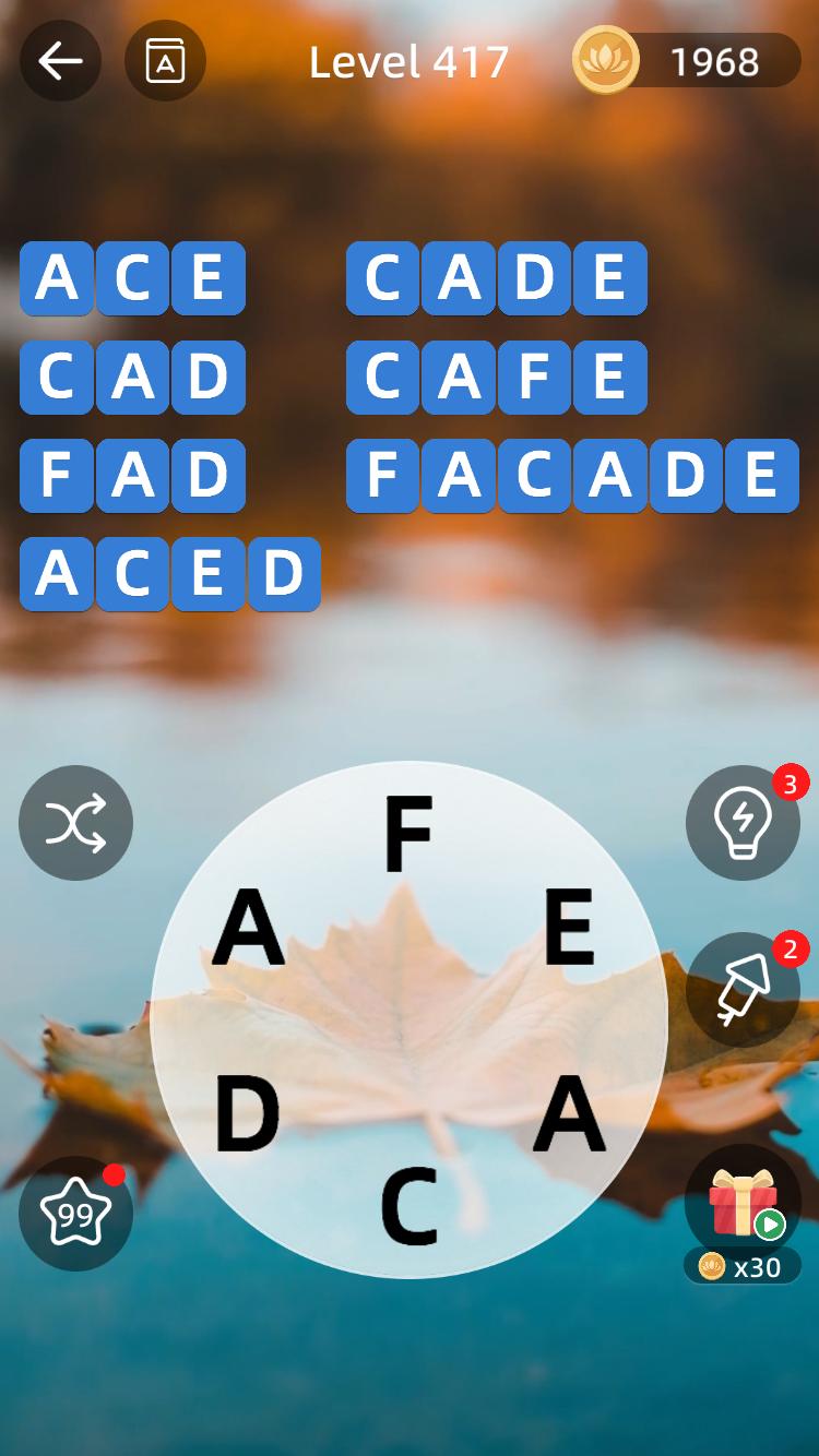 Zen Word – Relax Puzzle Game presents a formidable word and brain challenge that serves as a workout for your cognitive faculties and a sharpener for your intellect. In Zen Word, you must embark on a quest to identify and link the correct letters, ultimately unveiling an average of 20 hidden words in each level, putting your vocabulary to the test. The length of the words remains your sole guiding factor in unearthing all the words and surmounting the challenges. Sometimes some of levels are quite hard. For this we are ready to help you. On this page you can find photo with answers for Level 417 Zen Word – Relax Puzzle Game. For more level answers follow link below photo.
